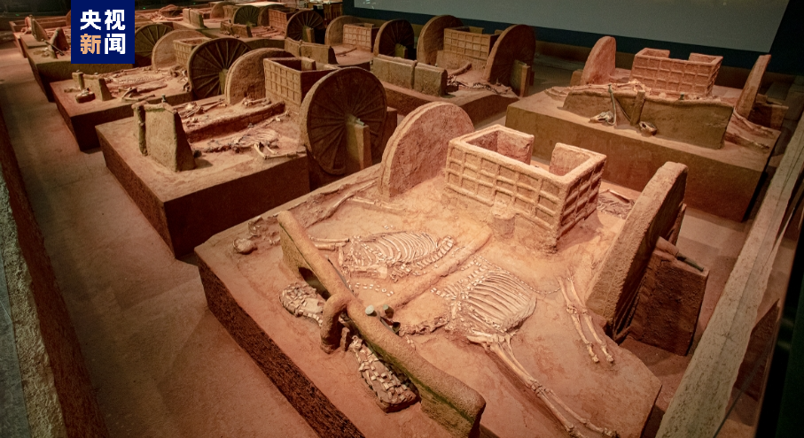 “車轔轔馬蕭蕭”殷墟車馬遺跡展,展廳內(nèi)23座車馬坑遺跡,矩陣式陳列,氣勢震撼。展示了商代裝飾華麗、結(jié)構(gòu)精巧、機(jī)動(dòng)靈活的馬車,是中國目前所見最早的馬車實(shí)物標(biāo)本,更是對三千多年前商文明的生動(dòng)詮釋。經(jīng)過近百年探索,殷墟發(fā)掘車馬坑九十余座,再現(xiàn)了商代馬車面貌。馬車不僅作為王室貴族的代步工具,也在驛站傳遞、田獵出行、載兵作戰(zhàn)等方面發(fā)揮著重要作用。殷墟馬車多埋于大型墓葬附近或墓道內(nèi)、以車、馬、人合葬居多。殷墟早期以車馬器陪葬,車馬器套數(shù)代表主人所擁有的馬車數(shù)量,見證著主人身份等級(jí)的高低;晚期馬車陪葬成為中、上級(jí)貴族的專屬,彰顯著墓主人的赫赫權(quán)威,亦是馬車陪葬制度的萌芽。