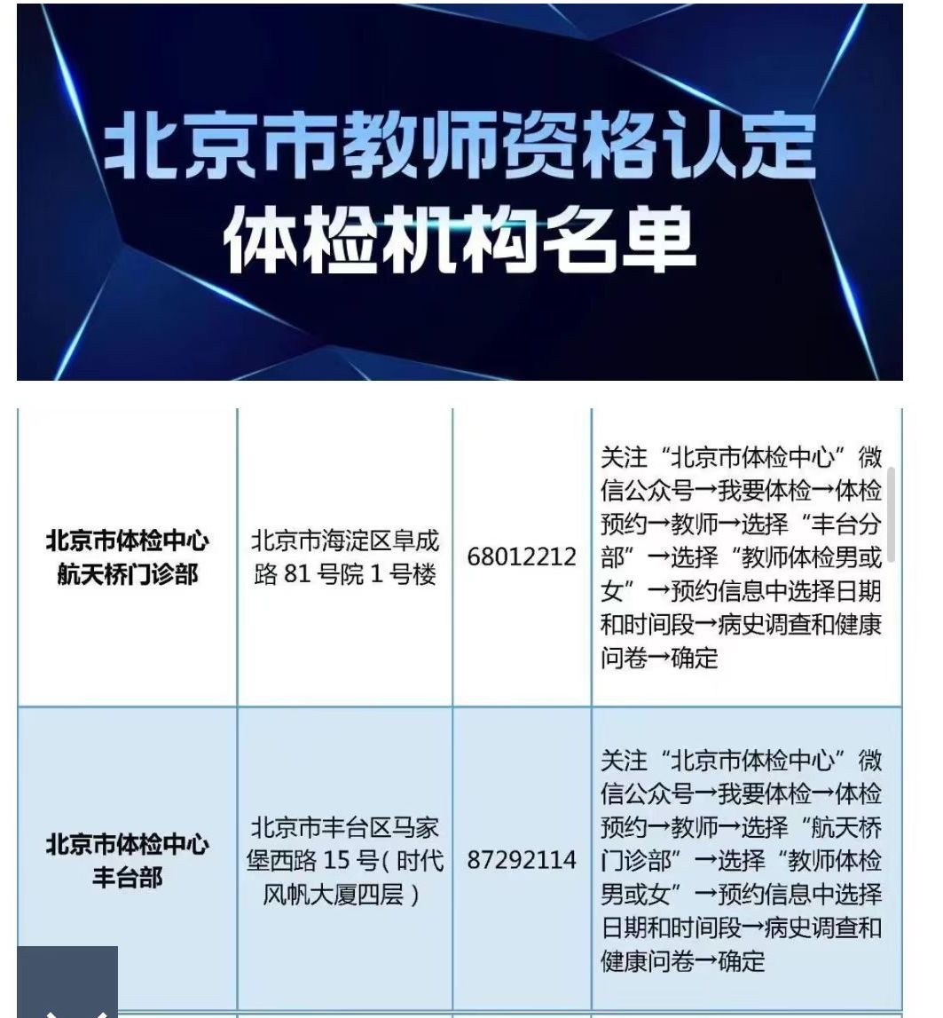 尚未進行體檢的請自行與體檢機構(gòu)聯(lián)系完成體檢。北京市體檢中心將于3月中下旬在豐臺部、航天橋門診部和馬甸部舉行多場教師資格認(rèn)定體檢專場。具體時間安排可聯(lián)系相應(yīng)機構(gòu)咨詢。