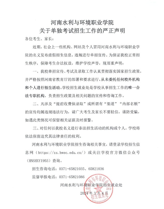 河南多所學(xué)校就單獨考試招生工作發(fā)布嚴(yán)正聲明