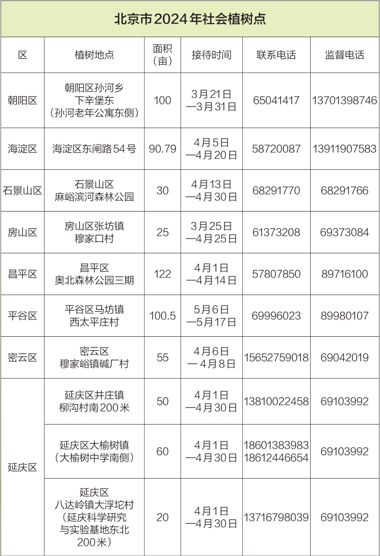 首都綠化委員會(huì)辦公室公布2024年義務(wù)植樹盡責(zé)接待點(diǎn)