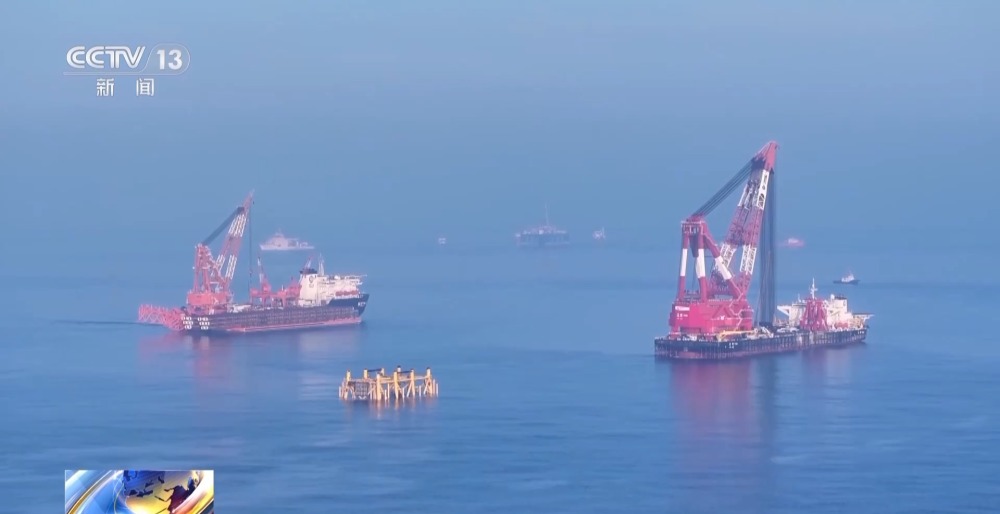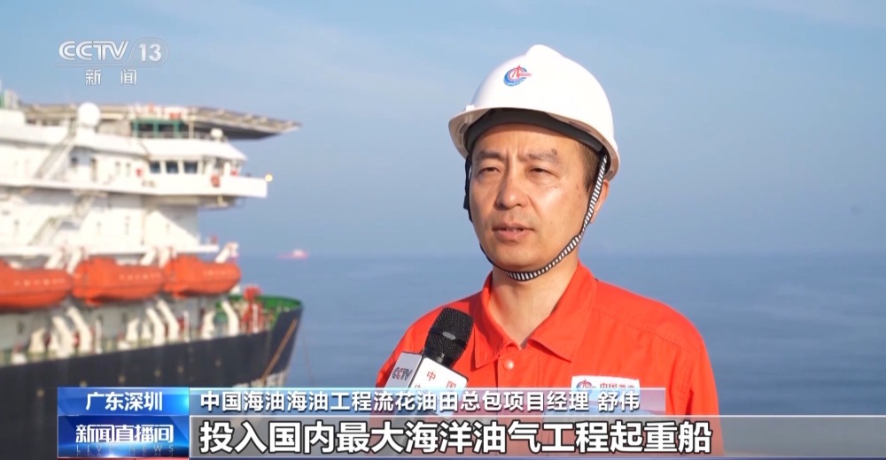 總臺央視記者 古峻嶺:在“?;枴焙I习惭b作業(yè)現(xiàn)場,經(jīng)過16個小時的連續(xù)施工作業(yè),“?;枴币呀?jīng)由昨天滑移下水時的橫向漂浮狀態(tài),變?yōu)橹绷顟B(tài),它高達338米的龐大身軀,已經(jīng)穩(wěn)穩(wěn)站立在了324米深的海床之上,僅有10余米的部分露出水面,接下來工作人員將以它為基礎,建設安裝一座萬噸級海上鉆井平臺。未來它將在臺風和惡劣海況的輪番考驗下,在這里穩(wěn)穩(wěn)矗立30年,源源不斷地將深海油氣輸送到千家萬戶,為保障國家能源安全提供堅強支撐。