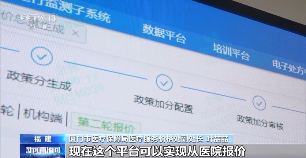 廈門市醫(yī)療保障局醫(yī)療服務(wù)價(jià)格處副處長(zhǎng) 葉喆喆:這個(gè)平臺(tái)可以實(shí)現(xiàn)從醫(yī)院報(bào)價(jià)到項(xiàng)目經(jīng)濟(jì)分的生成,到最后方案形成的全流程,極大地提高了我們的工作效率。