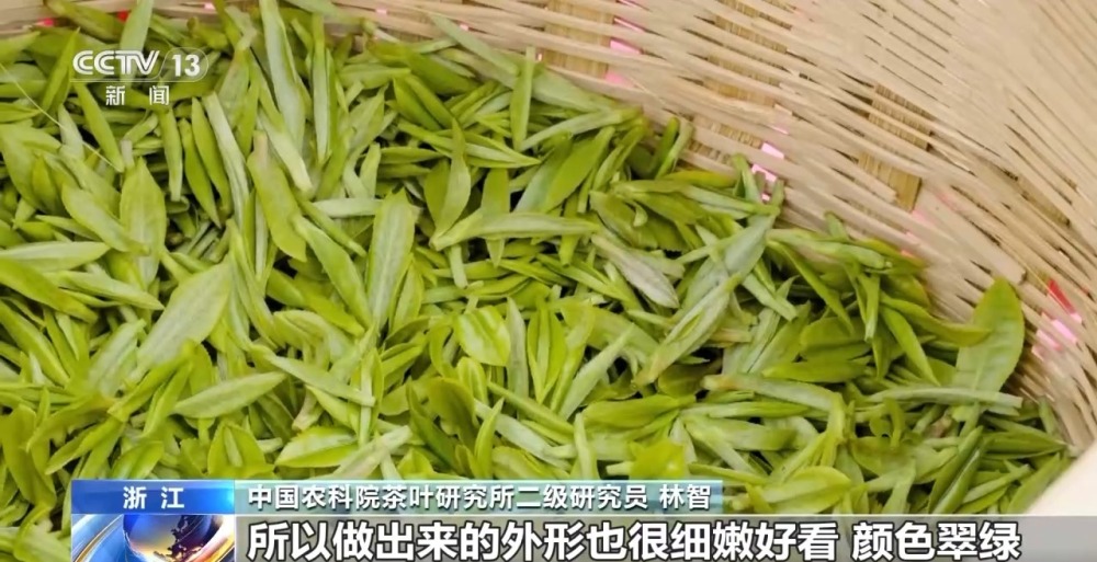 中國農(nóng)科院茶葉研究所二級研究員 林智:所以它有幾個特點,第一個就是好看,為什么說好看呢,因為春天茶的芽葉比較細(xì)嫩,所以也比較金貴,做工一般都比較講究,做出來的外形也很細(xì)嫩好看,顏色翠綠。