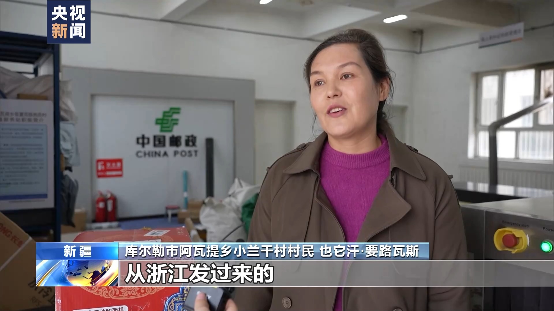 庫(kù)爾勒市阿瓦提鄉(xiāng)小蘭干村村民 也它汗·要路瓦斯:我在網(wǎng)上買了一個(gè)和面機(jī),從浙江發(fā)過(guò)來(lái)的。過(guò)去拿快遞只能到鄉(xiāng)里,現(xiàn)在直接到家門口,當(dāng)天我就拿到手。