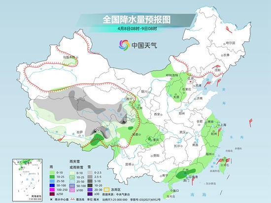 預(yù)計(jì)今天(4月8日),江南、華南等地降雨將明顯減少減弱,迎來(lái)降雨間歇期。但在青藏高原中東部,未來(lái)三天仍將出現(xiàn)持續(xù)性雨雪天氣。此外,今明兩天,東北、華北等地在冷空氣以及降水的影響下,氣溫將普遍下降。冷空氣過(guò)后,上述地區(qū)氣溫又會(huì)快速回升。