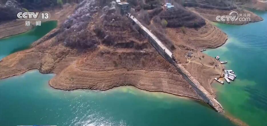 您現(xiàn)在看到的是位于河北省寬城滿族自治縣境內(nèi)的潘家口水庫“水下長城”。長城內(nèi)外,漫山遍野的山杏花悄然綻放,在春風中爭芳斗艷,時而飄來陣陣花香。春日里,盛開的杏花、碧綠的湖水與巍峨的長城交相輝映,形成了剛?cè)嶂赖耐昝廊诤?,?gòu)成一幅絕美的畫卷,吸引了眾多游客登上長城前來賞花踏青。