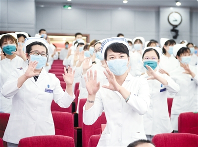 5月11日,北京大學第三醫(yī)院舉辦紀念南丁格爾誕辰200周年暨歡迎援鄂護士返崗活動?;顒又?,對優(yōu)質(zhì)護理服務先進集體、十佳護士等進行了表彰。全體醫(yī)護人員重溫南丁格爾誓言,并用手語舞蹈《聽我說謝謝你》,表達對醫(yī)護人員崇高的敬意。本報記者張丹 特約記者仰東萍攝影報道