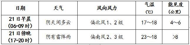 21日北京城區(qū)有降雨天氣,出行做好防雨;氣溫有所波動(dòng),晝夜溫差較大,早晨體感偏涼,午后偏熱,請根據(jù)氣溫變化及時(shí)調(diào)整著裝,以防感冒。