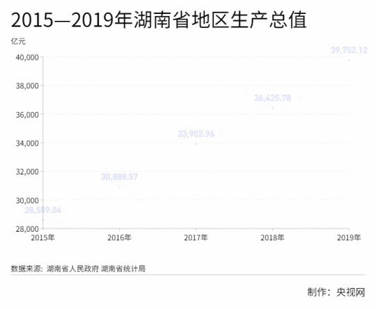 2019年,湖南地區(qū)生產(chǎn)總值接近4萬億元,達39752.12億元,按不變價格計算,比上年增長7.6%,符合7.5%—8%的預(yù)期目標(biāo)。