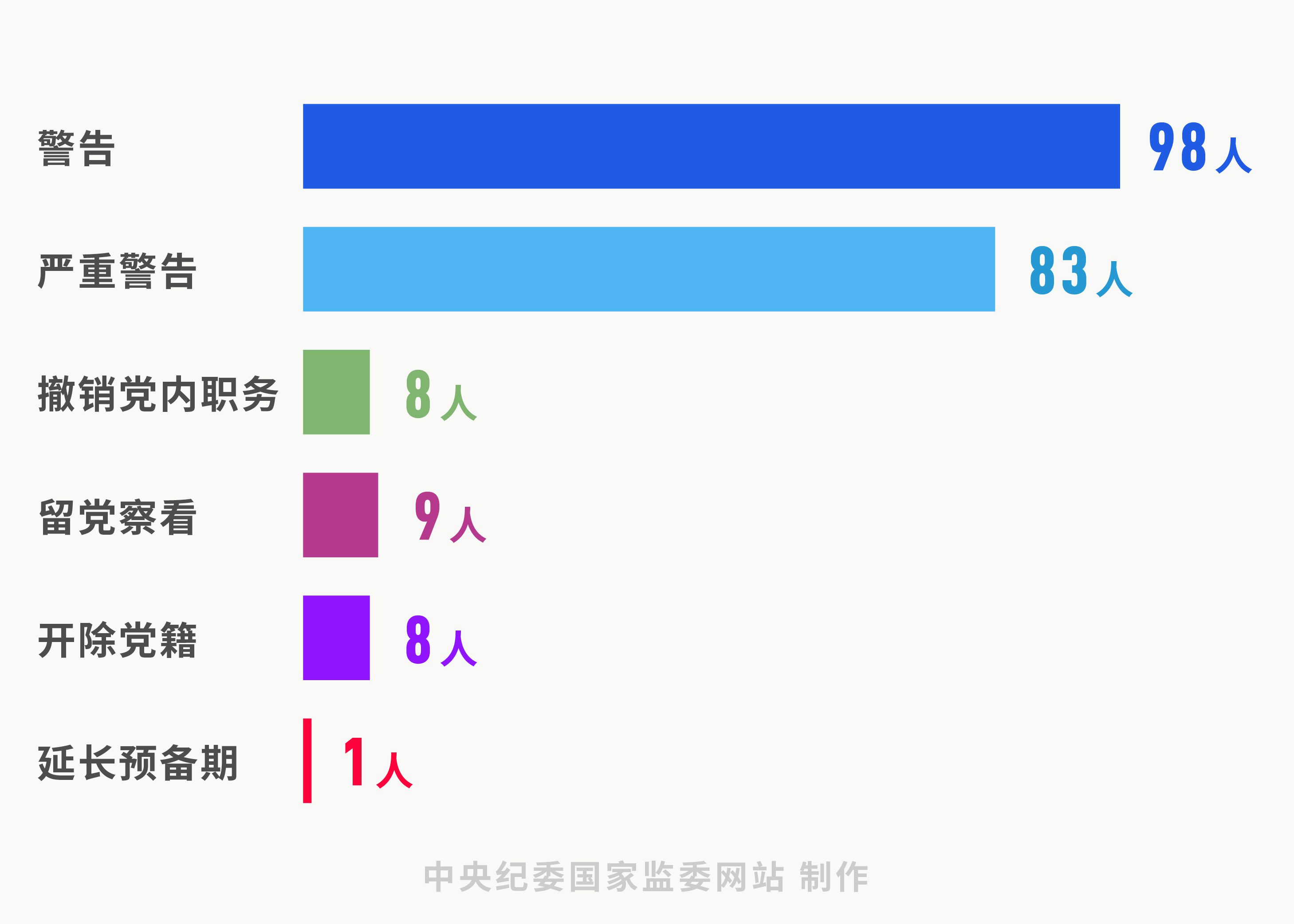 分析處分類型,受到黨紀處分的共計207人,其中,警告98人,嚴重警告83人,撤銷黨內(nèi)職務8人,留黨察看9人,開除黨籍8人,延長預備期1人;受到政務處分的共計42人,其中33人同時受到黨紀處分;12人受到誡勉談話、談話提醒、調(diào)離崗位等處理。運用第一、二種形態(tài)處理人數(shù),占處理總?cè)藬?shù)的92%。用足用好“四種形態(tài)”,咬耳扯袖、紅臉出汗已成常態(tài),監(jiān)督執(zhí)紀更加精準,使更多干部受到警醒,體現(xiàn)的是嚴管和厚愛結(jié)合。