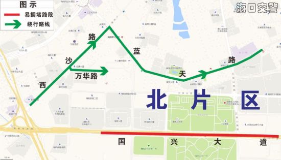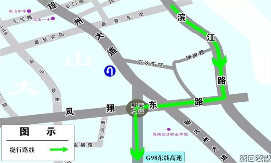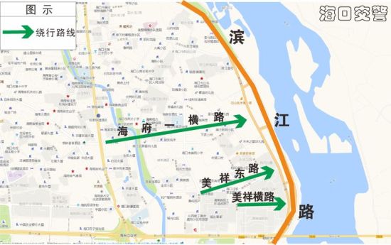 (二)走濱江路→鳳翔東路前往東線高速,盡量避開海府路→瓊州大道、龍昆南路→迎賓大道出城壓力集中的道路。