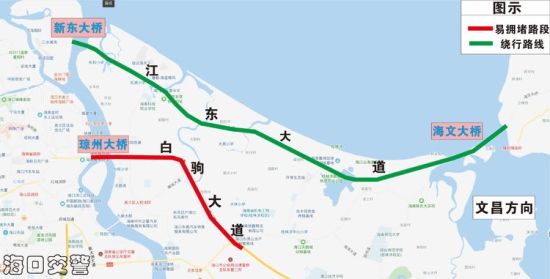 (三)經(jīng)瓊州大橋、白駒大道前往文昌的車輛集中,建議取道新東大橋、海文大橋往返,減輕國(guó)興大道、瓊州大橋交通壓力。