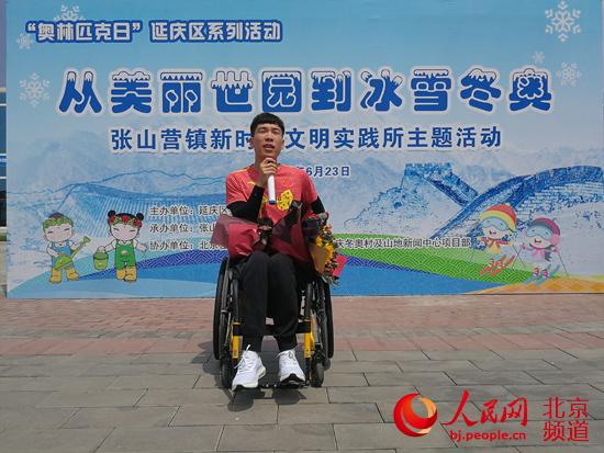 平昌冬殘奧會(huì)冠軍、土生土長的延慶本地人陳建新與大家分享了他的冬奧會(huì)追夢歷程。人民網(wǎng)尹星云 攝