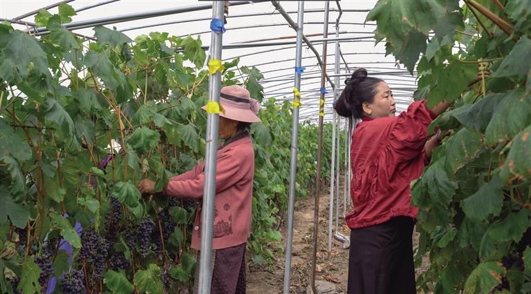 葡萄園內(nèi),工人們正穿梭在葡萄架間進(jìn)行著剪枝等日常養(yǎng)護(hù),一派繁忙景象,大家正鉚足勁為葡萄上市做足準(zhǔn)備。扎西卓瑪是葡萄園里的老員工,從最初的15畝到現(xiàn)在的8500畝,她不僅見證了葡萄基地的發(fā)展壯大,更是在湖南省農(nóng)業(yè)技術(shù)干部的幫助下,從一個(gè)葡萄種植“門外漢”,成為有名的種植能手?!耙郧凹依飾l件不好,沒有穩(wěn)定的收入,主要是靠外出打零工維持生活,如今有了這份家門口的工作,不僅每月收入穩(wěn)定,而且方便照顧家里?!痹髯楷斦f,現(xiàn)在不少村民蓋了新房、買了新家具,一些村民還買了家用小汽車。