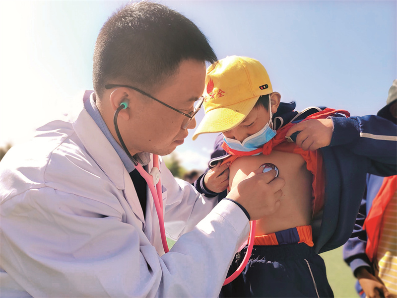 2022年4月,南京醫(yī)科大學(xué)第二附屬醫(yī)院“心佑”工程團隊的醫(yī)生在西藏自治區(qū)拉薩市曲水縣小學(xué)為學(xué)生做先天性心臟病篩查。拉姆 攝