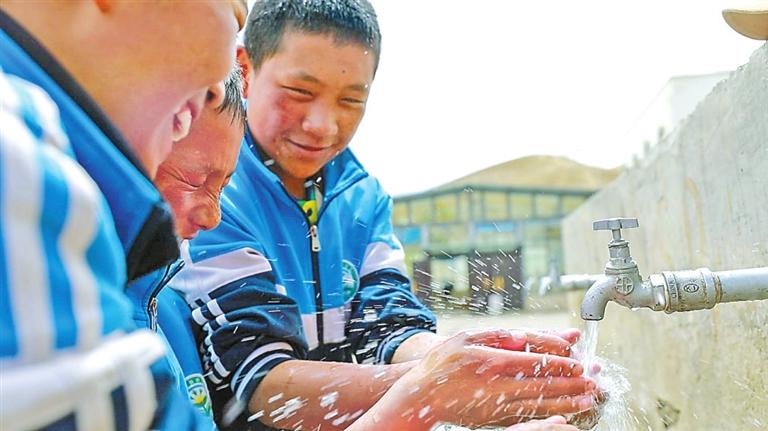 謝通門(mén)縣縣城自來(lái)水管網(wǎng)升級(jí)改造后,學(xué)生用自來(lái)水洗手。