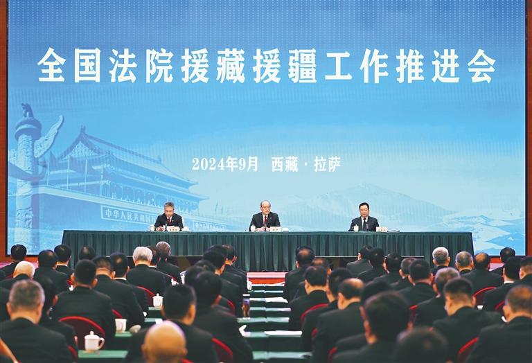 九月十一日,全國(guó)法院援藏援疆工作推進(jìn)會(huì)在拉薩召開(kāi)。最高人民法院黨組書記、院長(zhǎng)張軍,自治區(qū)黨委書記王君正出席并講話。這是會(huì)議現(xiàn)場(chǎng)。本報(bào)記者 旦增西旦 攝