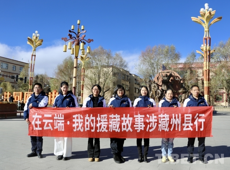 圖為宣講團援藏干部代表在甘孜縣羅布林廣場合影留念 攝影:龍真多吉