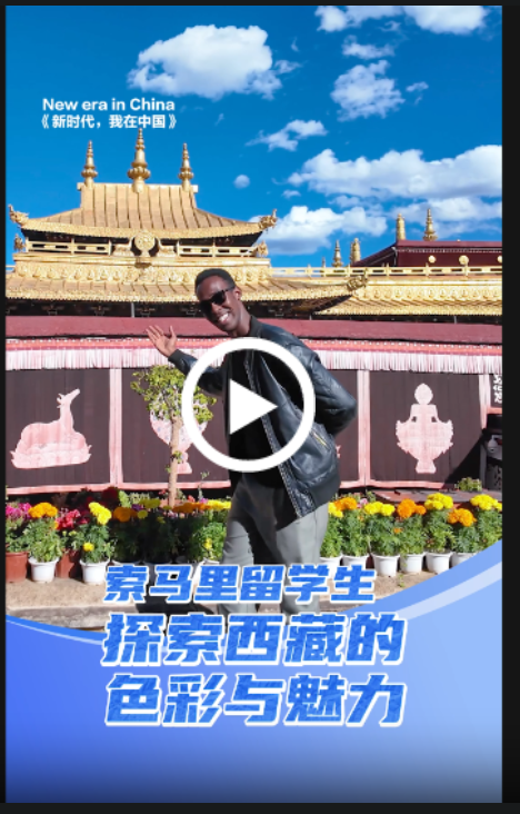在西藏的藍(lán)天白云下,索馬里留學(xué)生陽(yáng)光(Musab Abdikadir)覺得這里的風(fēng)景宜人、色彩斑斕,令人心馳神往。作為中央民族大學(xué)的學(xué)生,陽(yáng)光在中國(guó)已生活了八年,初次踏足西藏,他便被這片充滿新鮮感的土地和震撼心靈的美景所打動(dòng)。