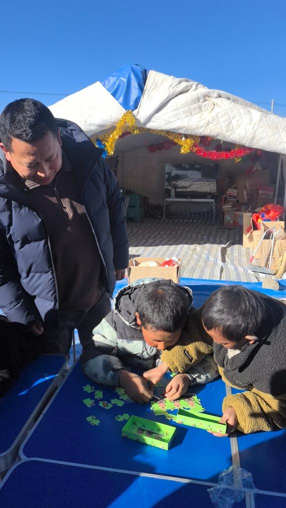 “地震發(fā)生后,必須第一時(shí)間引入專業(yè)的心理疏導(dǎo)團(tuán)隊(duì),為安置點(diǎn)的小朋友們消除地震可能帶來(lái)的心理陰影?!眻F(tuán)隊(duì)負(fù)責(zé)人亞瑪介紹,“我們團(tuán)隊(duì)中有多位持證心理咨詢師,他們?cè)谛∥葜袨楹⒆觽兲峁┬睦硎鑼?dǎo)、情緒支持等服務(wù)。”