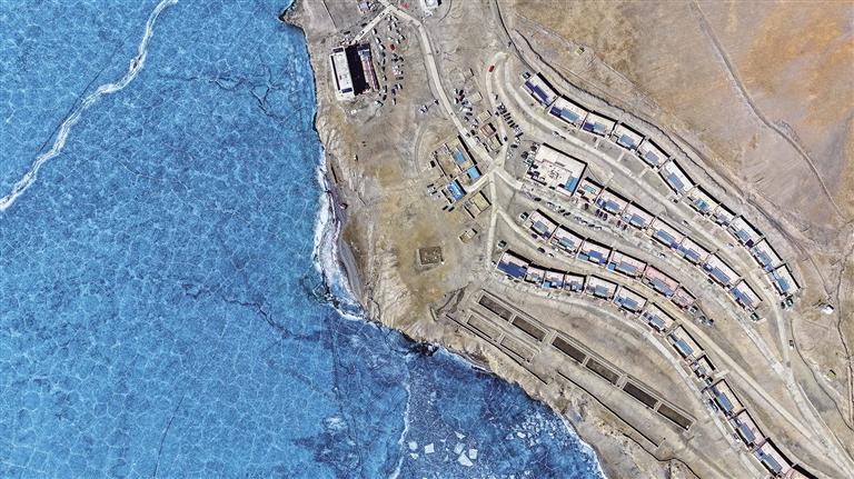 浪卡子縣打隆鎮(zhèn)推瓦村,南部與不丹接壤,邊界線長(zhǎng)達(dá)25公里,是世界上海拔最高的純牧業(yè)行政村之一。全村共有40戶(hù)人家,153位村民在此生活。2月6日,記者踏入推瓦村,首先映入眼簾的是遠(yuǎn)處的普姆擁措湖,湖面在陽(yáng)光的照耀下波光粼粼,與錯(cuò)落有致的雪山相互映襯,構(gòu)成一幅絕美的畫(huà)面。沿著平坦的柏油馬路前行,道路兩旁整齊排列的路燈和一排排以溫馨黃色為主色調(diào)的邊境小康房格外引人注目。漫步在臨近冰湖的村路上,悠然愜意之感油然而生,雪山、湖泊、村落與村民們和諧相融,共同繪就了一幅寧?kù)o祥和的鄉(xiāng)村畫(huà)卷。