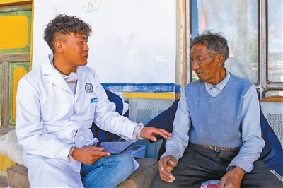 走進(jìn)大門(mén),他一邊和老人寒暄,一邊從包里拿出血壓計(jì)。“這兩個(gè)月血壓變化不大,咱們還要繼續(xù)保持健康生活習(xí)慣,不要吃太多油鹽?!绷客暄獕?,索朗丹增細(xì)細(xì)叮囑。