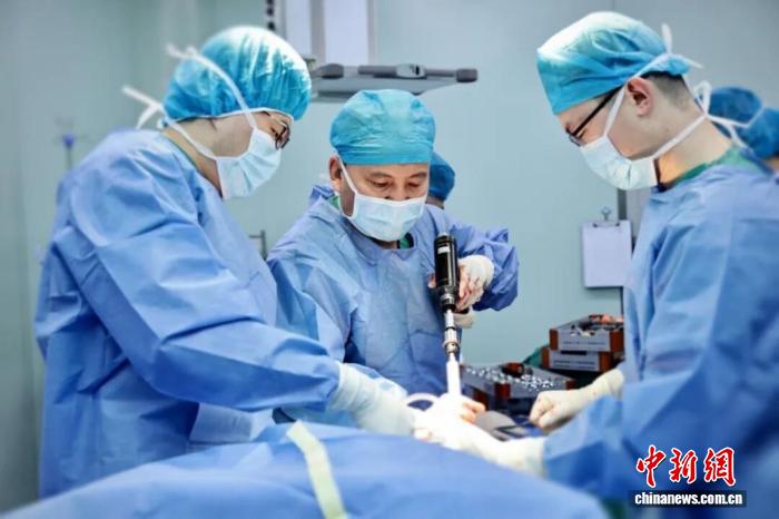青島醫(yī)療團(tuán)隊(duì)在手術(shù)中。(青島市市立醫(yī)院供圖)