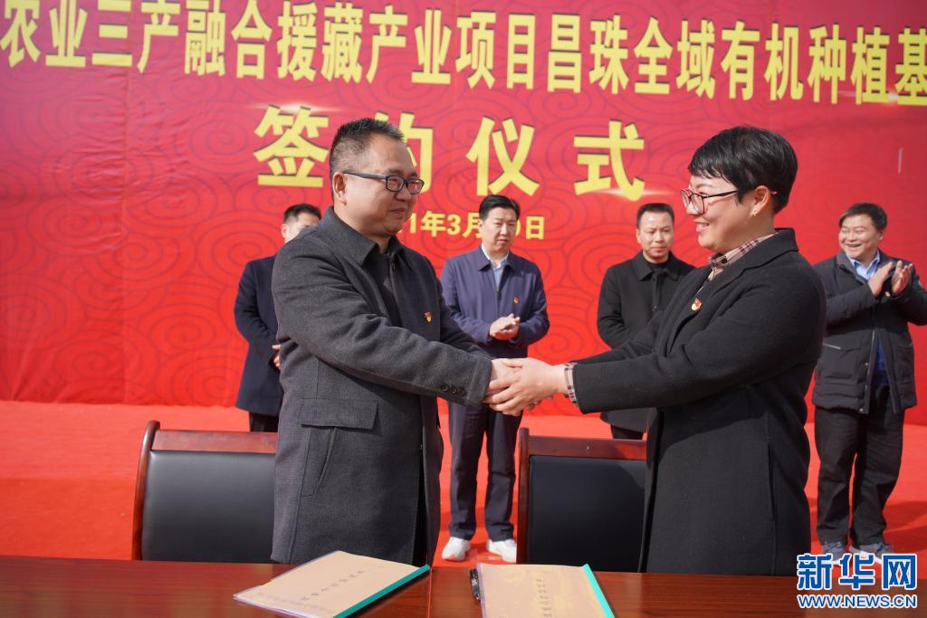 山南昌珠全域有機(jī)種植基地項(xiàng)目簽約儀式現(xiàn)場(chǎng)(2021年3月20日攝)。(受訪者供圖)