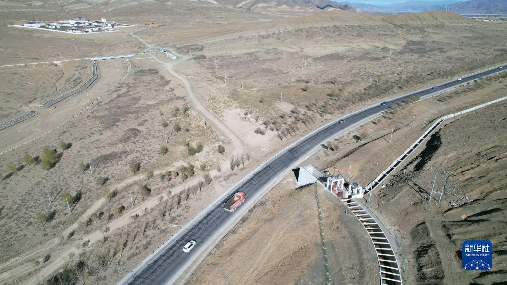 拉洛水利樞紐工程穿越318國道的灌渠。新華社記者 劉詩平 攝