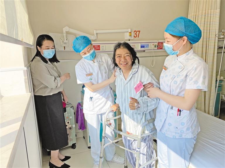 圖為患者布珠術后在醫(yī)護人員的幫助下進行康復訓練。 記者 周婷婷 攝