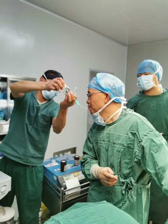 2021年12月24日,重慶醫(yī)科大學(xué)附屬第一醫(yī)院胸心外科副主任、醫(yī)療人才“組團(tuán)式”援藏重慶醫(yī)療隊(duì)隊(duì)長蔣迎九(前)半夜急診,長時(shí)間手術(shù)術(shù)中采用特殊方式飲水解渴。新華社發(fā)
