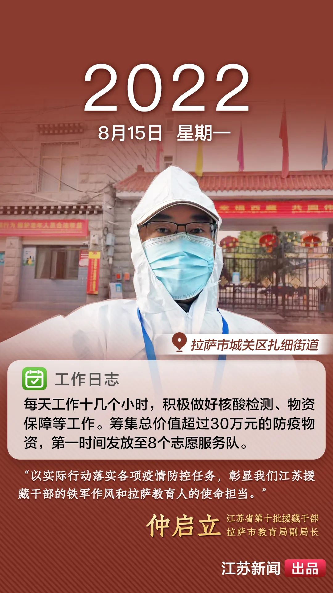 2022年8月,一場突如其來的新冠肺炎疫情襲擊拉薩。江蘇援藏前方指揮部樹立高度的政治意識,堅決貫徹江蘇省委、省政府主要領(lǐng)導批示精神和自治區(qū)、拉薩市部署要求,全力以赴做好疫情防控工作。第十批援藏干部人才克服初到高原的身體反應,服從服務大局、勇于擔當作為,迅速投身疫情防控工作一線,以實際行動展現(xiàn)江蘇援藏的鐵軍作風。近期,我們將陸續(xù)推出江蘇援藏干部人才抗疫身影,敬請關(guān)注。