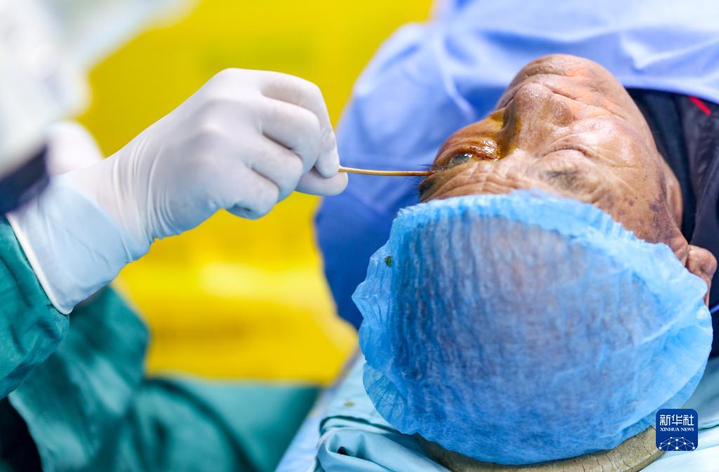 6月8日,光明眼科康復診療院的醫(yī)生在為一位農(nóng)牧民患者做白內(nèi)障手術。新華社記者 姜帆 攝