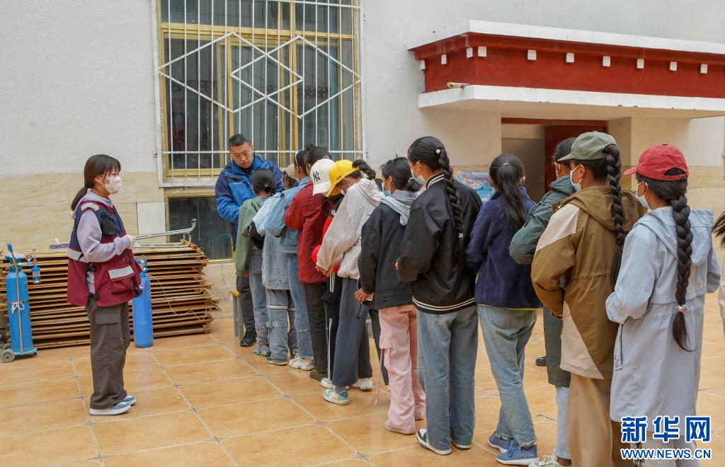 4日上午,在那曲市色尼區(qū)尼瑪鄉(xiāng)小學(xué)學(xué)生宿舍一樓大廳,學(xué)生們齊刷刷排成隊(duì)等待做心臟聽診?!奥犜\有問題的同學(xué),由老師帶去做心臟彩超?!鳖I(lǐng)隊(duì)醫(yī)生耿直一邊吸氧一邊聽診。