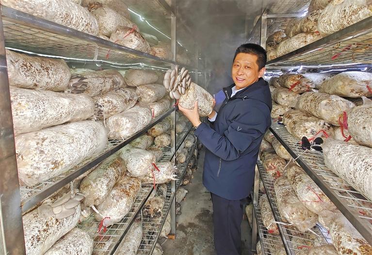 噶爾縣引進(jìn)的植物工廠云倉(cāng)種植箱成功實(shí)現(xiàn)蘑菇種植。記者 王莉 攝