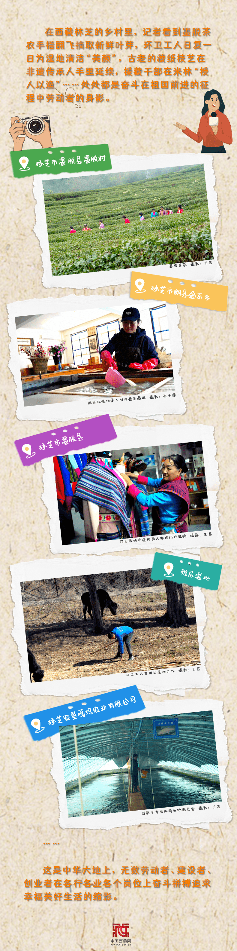 在西藏林芝的鄉(xiāng)村里,記者看到墨脫茶農(nóng)手指翻飛摘取新鮮葉芽,環(huán)衛(wèi)工人日復一日為濕地清潔“美顏”,古老的藏紙技藝在非遺傳承人手里延續(xù),援藏干部在米林“授人以漁”……處處都是奮斗在祖國前進征程中勞動者的身影。這是中華大地上,無數(shù)勞動者、建設者、創(chuàng)業(yè)者在各行各業(yè)各個崗位上奮斗拼搏追求幸福美好生活的縮影。
