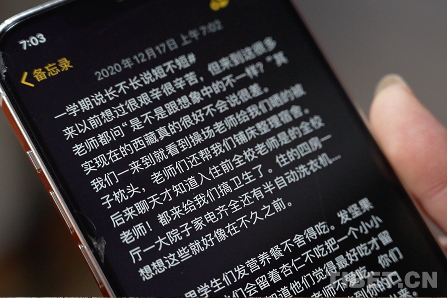 當(dāng)吳穎琦被問到為什么再次選擇西藏,我看見了她眼里充滿的熱愛和期待?!拔移鋵?shí)也說不清楚為什么想留下,只是如果不這么做,我怕自己會遺憾,總覺得還能為這片土地做更多?!边@是她手機(jī)備忘錄里的一句話。