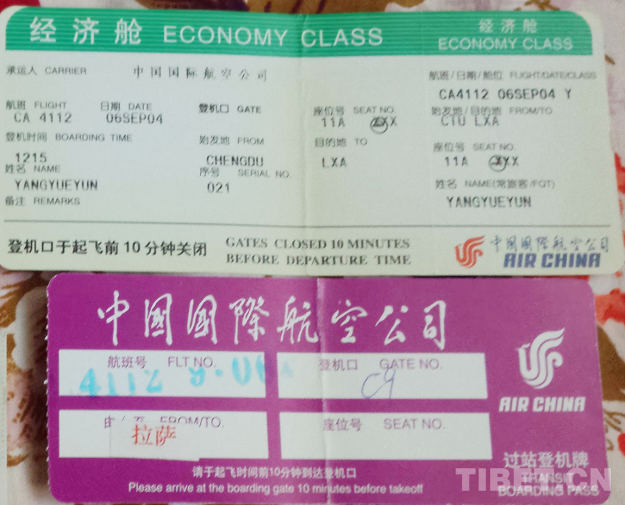 圖為2004年9月6日,作者第一次去西藏搭乘航班時(shí)的過站登機(jī)牌