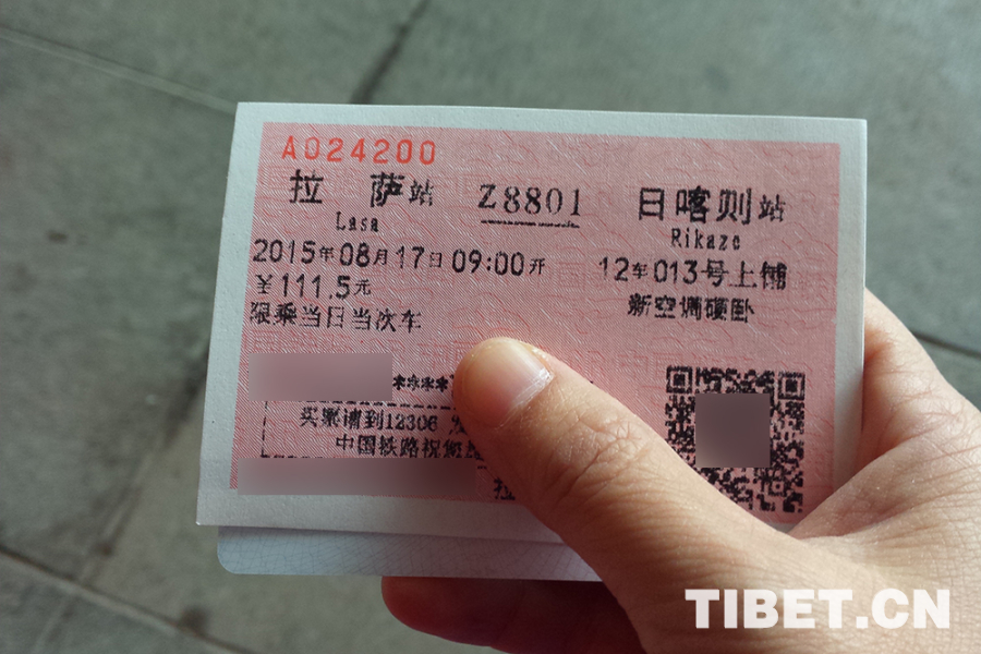 圖為作者2015年搭乘火車從拉薩前往日喀則的車票