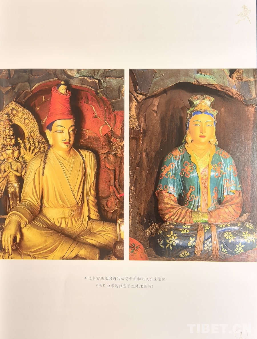 圖為《西藏文物薈萃:上師造像藝術(shù)》一書中布達拉宮法王洞內(nèi)松贊干布和文成公主塑像 吳雨初翻拍