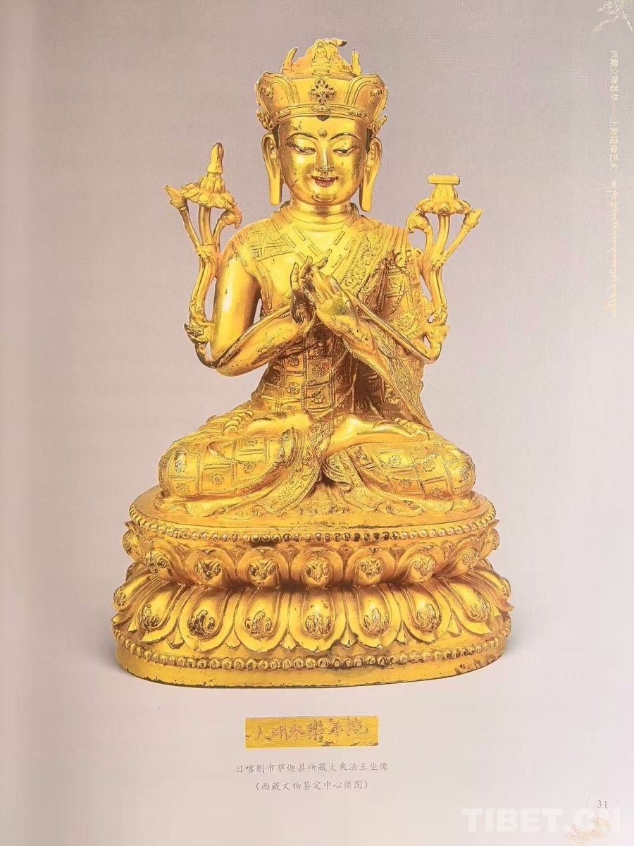 圖為《西藏文物薈萃:上師造像藝術(shù)》一書中日喀則市薩迦縣所藏大乘法王坐像 吳雨初翻拍