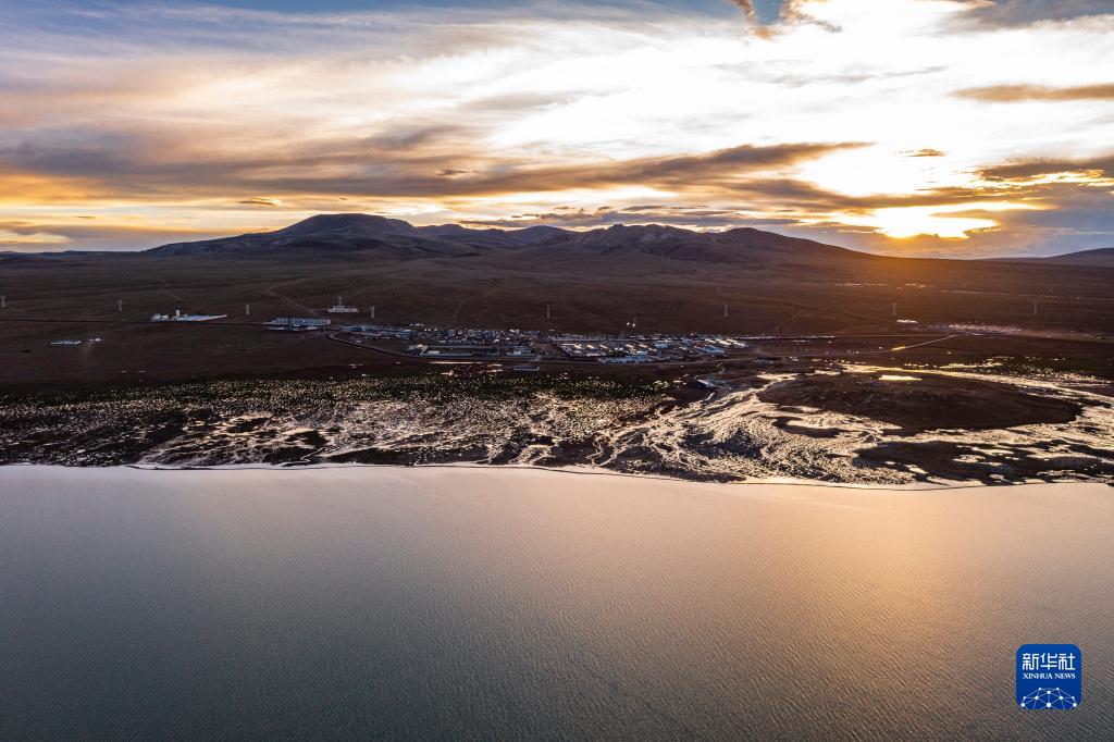 日落時(shí)分的雙湖縣多瑪鄉(xiāng)(7月14日攝,無(wú)人機(jī)照片)。新華社記者 孫非 攝