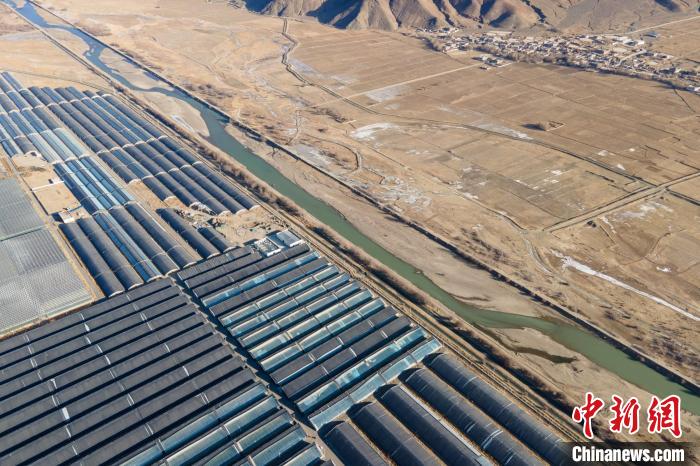 圖為1月28日上午,航拍西藏日喀則珠峰現(xiàn)代農(nóng)業(yè)科技創(chuàng)新博覽園蔬菜大棚。 江飛波 攝