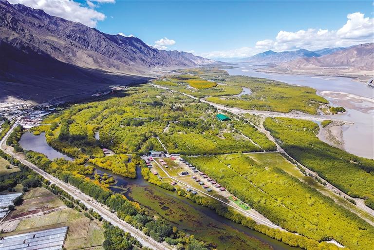 近年來,山南市持續(xù)加大生態(tài)環(huán)境保護力度,著力打造沿雅江、雅礱河、隆子河等生態(tài)廊道,持續(xù)鞏固國家生態(tài)文明建設示范市創(chuàng)建成果,讓綠色成為最靚麗的生態(tài)底色。 圖為雅江南岸防護林帶(乃東區(qū)段)如綠色“長城”般守護著雅江。(資料圖片)記者 劉楓 攝