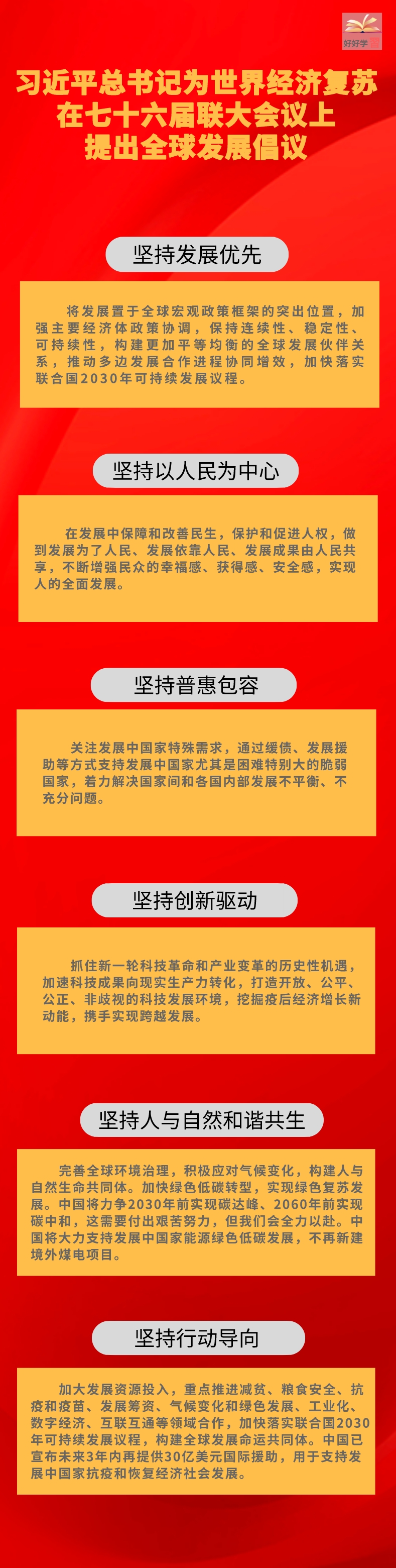 長圖|習(xí)近平總書記為世界經(jīng)濟(jì)復(fù)蘇在七十六屆聯(lián)大會(huì)議上提出全球發(fā)展倡議