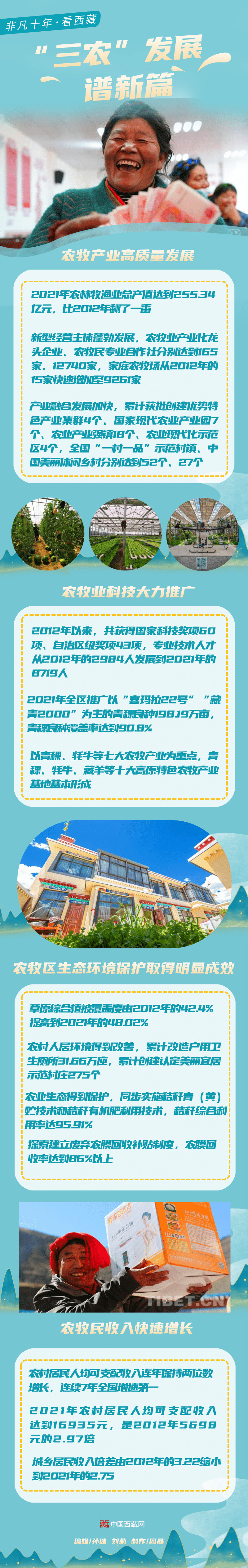 編者按:黨的十八大以來,以習(xí)近平同志為核心的黨中央高度重視西藏工作,習(xí)近平總書記多次對西藏工作作出重要指示批示,召開中央西藏工作座談會,親臨西藏視察指導(dǎo),為西藏工作指明了前進(jìn)方向、提供了根本遵循。十年來,西藏自治區(qū)認(rèn)真貫徹落實習(xí)近平總書記關(guān)于西藏工作的重要指示,完整準(zhǔn)確全面貫徹新時代黨的治藏方略,堅持以人民為中心的發(fā)展思想,努力推動西藏長治久安和高質(zhì)量發(fā)展,經(jīng)濟社會發(fā)展不斷取得新進(jìn)步。這是不平凡的十年,這是注定載入史冊的十年,讓我們回顧十年來西藏各項事業(yè)取得的全方位進(jìn)步、歷史性成就,以奮進(jìn)新征程、建功新時代的決心與行動,踔厲奮發(fā)、篤行不怠,迎接黨的二十大勝利召開。(中國西藏網(wǎng)編輯/孫健 劉莉 制作/周晶)
