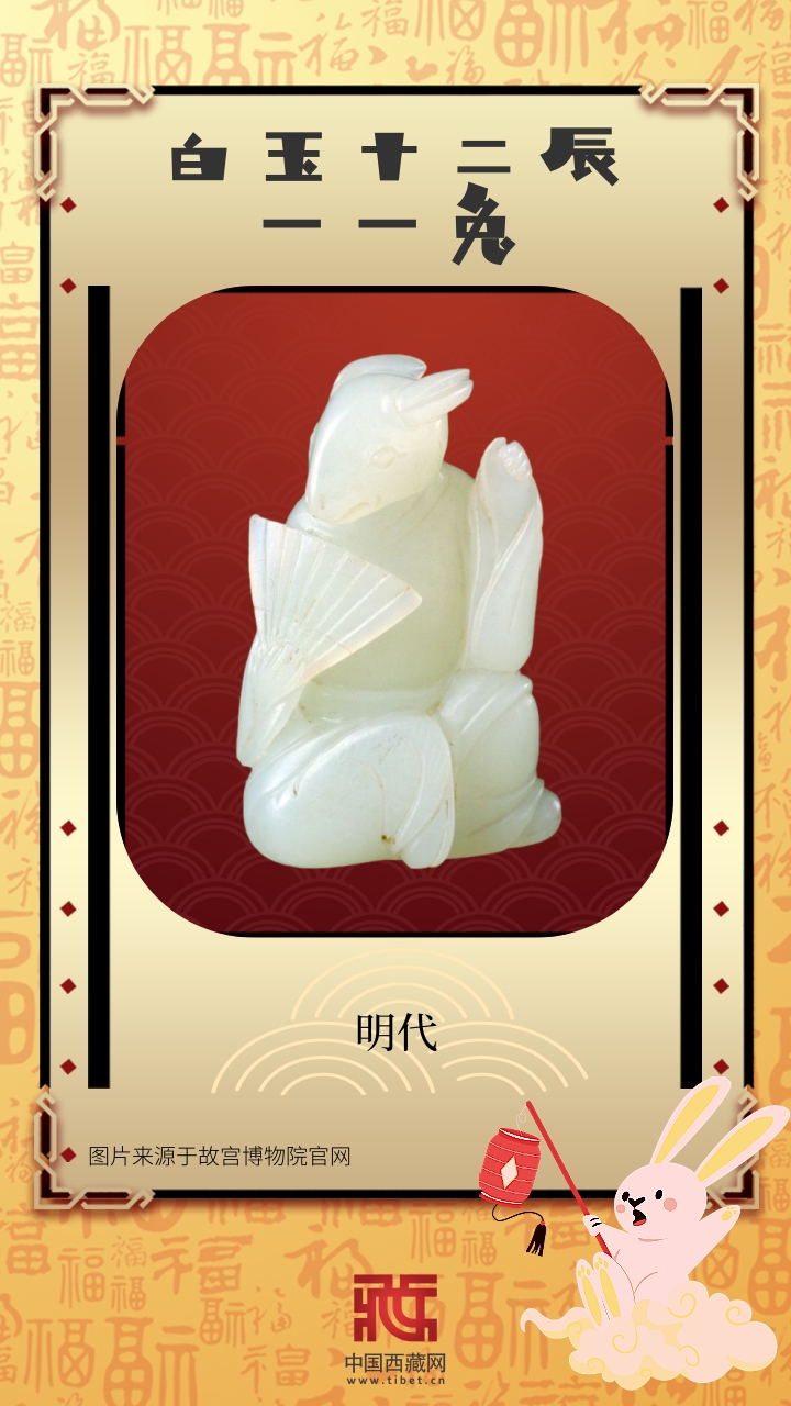 從新石器時代的“玉兔”,到西周的“青銅兔”,從唐代的生肖兔俑,到清代的“兔兒爺”,從漢代畫像石上的“玉兔搗藥”,到藏傳佛教寺院中的“和睦四瑞圖”……千百年來,兔子在中國人的心中早已化為祥瑞生靈的使者。人們將兔的形象融入器物之中,期冀為自己帶來福氣。讓我們跟隨文物古跡中的“萌兔”,迎接農(nóng)歷癸卯兔年的到來。(中國西藏網(wǎng) 編輯、制作/李元梅 周晶)