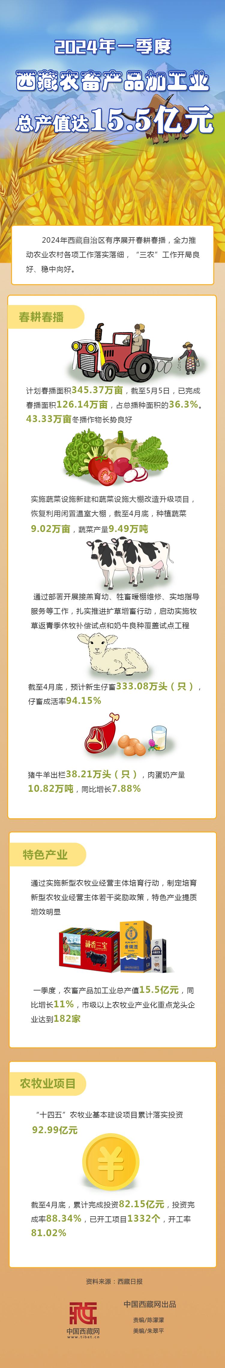 圖解|2024年一季度西藏農(nóng)畜產(chǎn)品加工業(yè)總產(chǎn)值達15.5億元