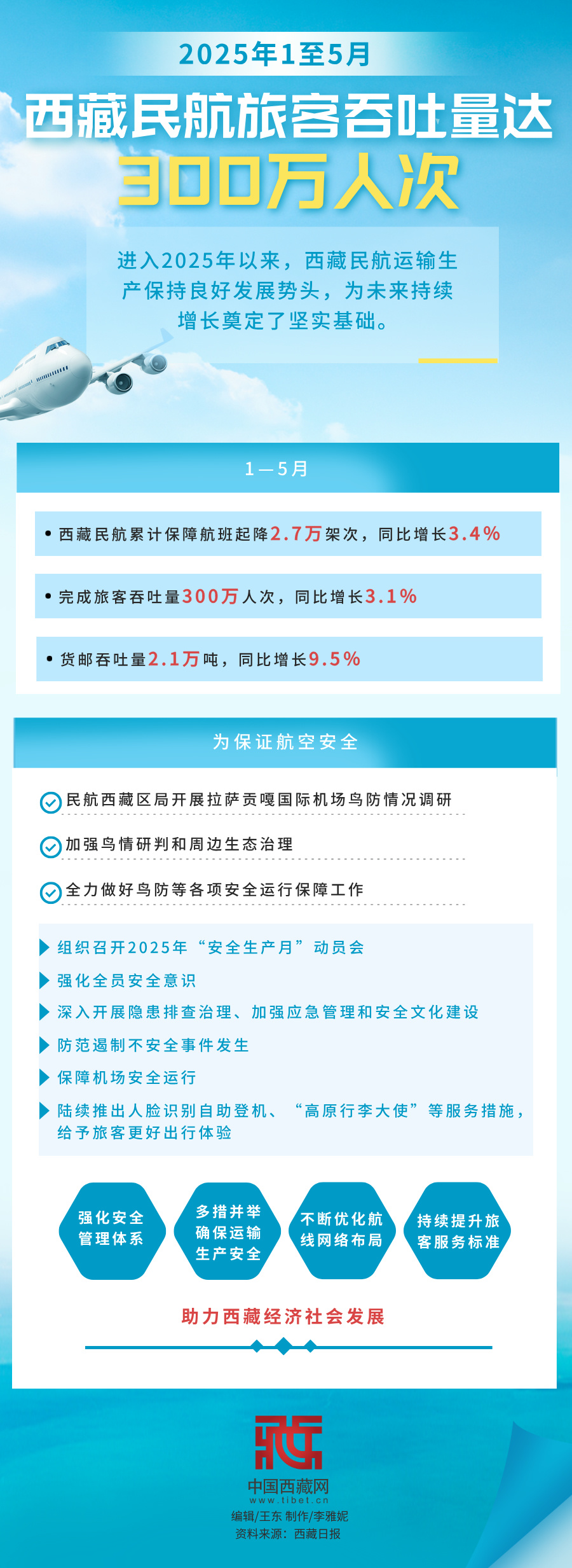 海報(bào)|2025年1至5月西藏民航旅客吞吐量達(dá)300萬人次