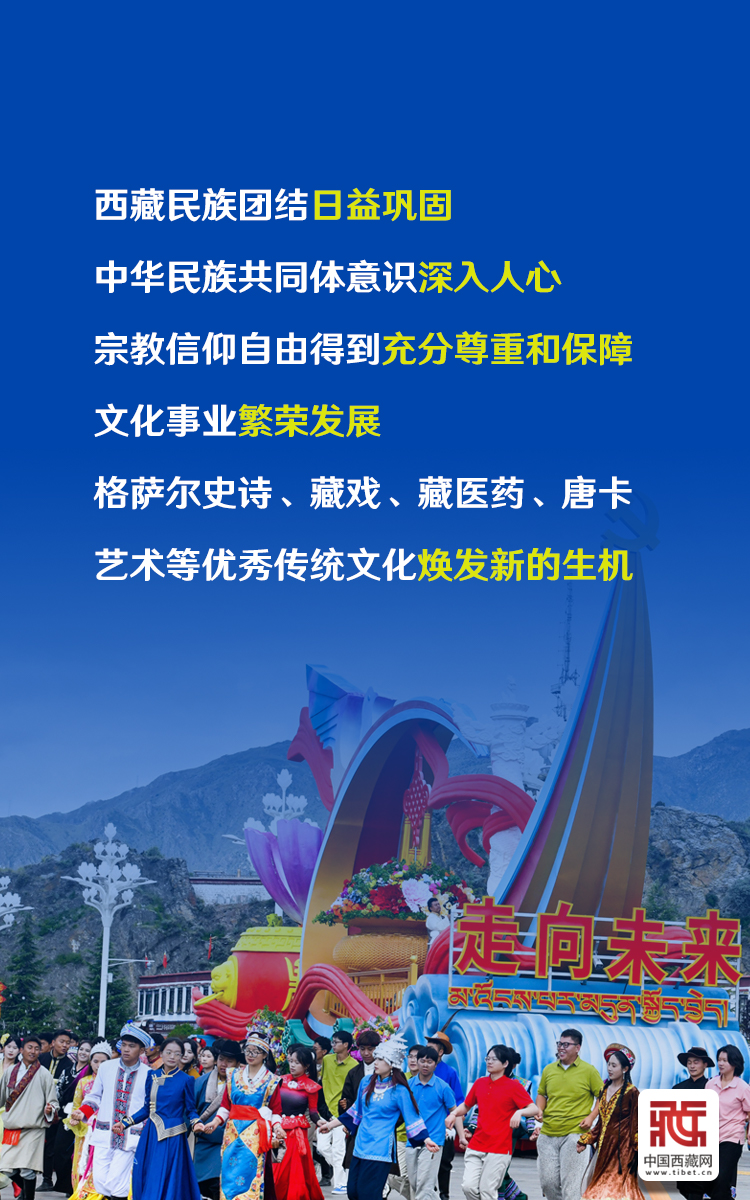 60年來,西藏經(jīng)濟社會全面發(fā)展,各族人民生活蒸蒸日上,生態(tài)文明建設(shè)成效顯著,民族團結(jié)日益鞏固,中華民族共同體意識深入人心,宗教信仰自由得到充分尊重和保障,文化事業(yè)繁榮發(fā)展。(中國西藏網(wǎng) 記者/王淑 馮重霖 邊子捷 趙振宇 德吉卓瑪 次旦拉姆 旦曲 賈華加 趙釗 姚浩然 劉莉 楊眉笑 海報制作/趙佳)